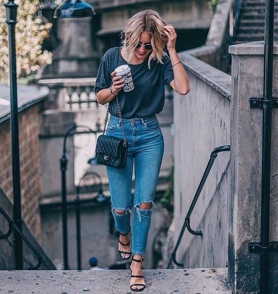 Đây là cách mix đồ được các cô nàng yêu thích sự cá tính, mạnh mẽ và trẻ trung áp dụng rất nhiều và không khó để chúng ta bắt gặp hình ảnh năng động này ở đời thường. Áo phông unisex và quần jeans rách khi kết hợp tạo nên vẻ bụi bặm, cá tính, khiến phái đẹp thoát khỏi sự nhẹ nhàng, nữ tính thường thấy.